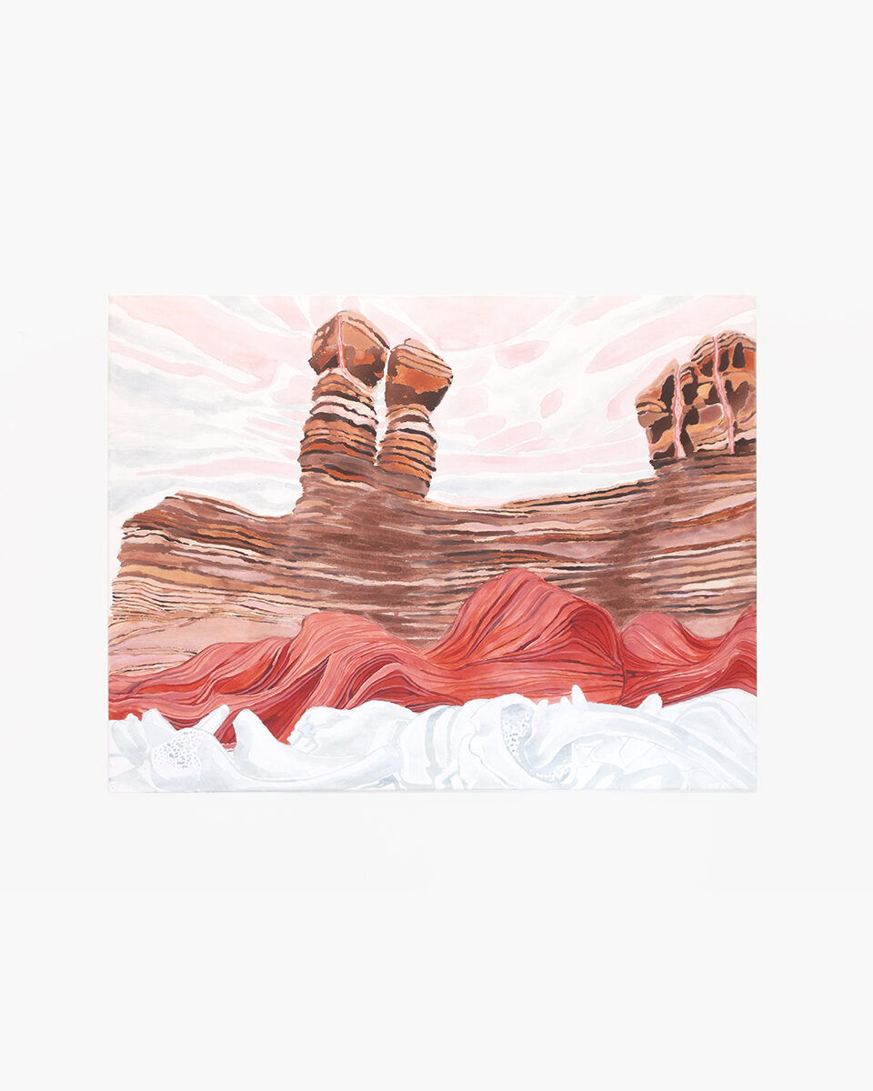 Developing the idea from the previous paintings, the « Incarnations » series shows the encounter of the body with the landscape, animated by an intense intimate relationship. Without hierarchy and limits, the flesh, the earth and the sky intertwine in a dreamlike, pantheistic vision. The constant change of perspective between the outside and the inside reflects the notion of universal permeability, cosmic reversibility and original superposition.